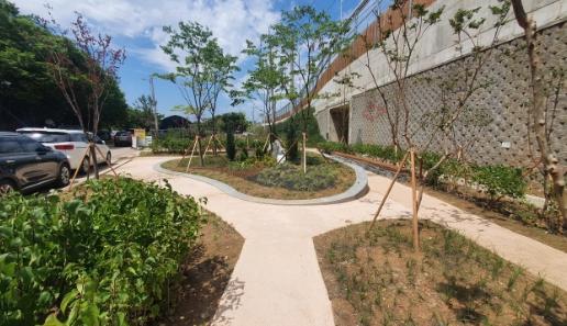 이에 시는 올해 주민참여예산으로 2억원을 편성해 지난 5월부터 공원 조성 작업을 시작했다. 시는 불법점유물을 철거하고 조경수와 야생초화를 식재했다. 이후 그늘쉼터 ? 야외용 운동기구를 설치하고 산채로를 조성해 10,000㎡ 규모의 쌈지공원 조성을 완료했다.