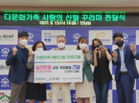 ㈜대연은 15일 부천시 소재 다문화가족 아동을 위해 1천만 원 상당의 나이키 제품을 부천시 다문화가족지원센터에 후원했다.