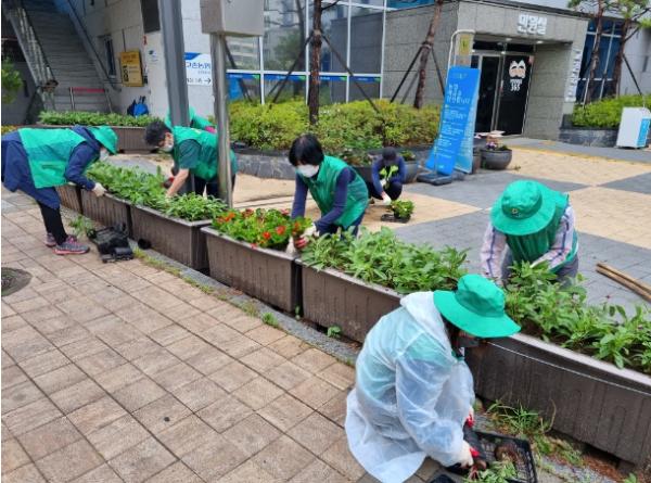 김포시 고촌읍 새마을지도자 및 부녀회는 지난 6월 15일, 소속 회원 및 고촌읍행정복지센터 직원과 함께 비가 오는 궂은 날씨에도 행정복지센터 인근 및 관내 주요 도로 화단에 여름꽃을 식재했다.