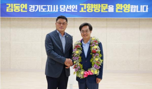 음성군은 김 당선자의 고향, 진천군은 외가가 있는 곳으로 이날 방문은 “경기도지사 취임으로 더 바빠지기 전에 아낌없는 성원을 보내준 고향 지역민들에게 꼭 감사 인사를 전하고 싶다”는 김 당선자의 의지에 따라 진행됐다.