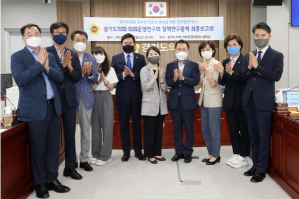 경기도의회 의회운영연구회는 17일 의회운영위원회 회의실에서 ‘경기도의회 공무원 전문성 향상을 위한 인사방안 연구(배치와 교육훈련을 중심으로)’ 최종보고회를 개최했다.