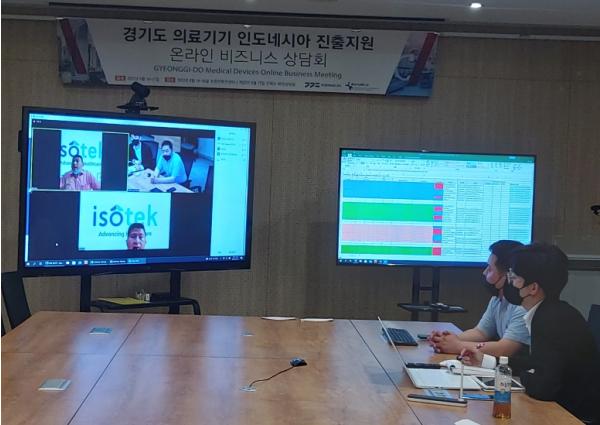 14~16일 수원컨벤션센터, 17일 고양 킨텍스에서 인도네시아 현지 기업과 온라인 방식으로 진행된 이번 상담회에는 도내 의료기기 제조업체 18개 사가 참여했다. 이들은 인도네시아 바이어들과 1대 1 디지털 화상 상담을 통해 제품 설명, 구매 의향을 타진했으며, 각국 정부의 코로나19에 대한 단계적 일상 회복 정책에 따른 의료기기 시장 변화 의견을 교환하는 등 값진 시간을 보냈다.