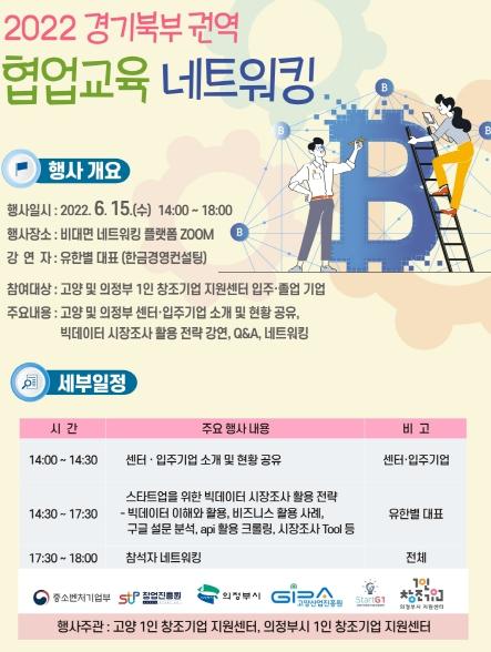 의정부시 1인 창조기업 지원센터는 6월 15일 고양 1인 창조기업 지원센터와 공동으로 경기북부권역 협업 교육 네트워킹 행사를 개최했다고 밝혔다. 이날 행사는 코로나19 상황을 고려해 온라인으로 진행됐으며, 각 센터의 입주기업 및 졸업기업 30여 명이 참석했다.
