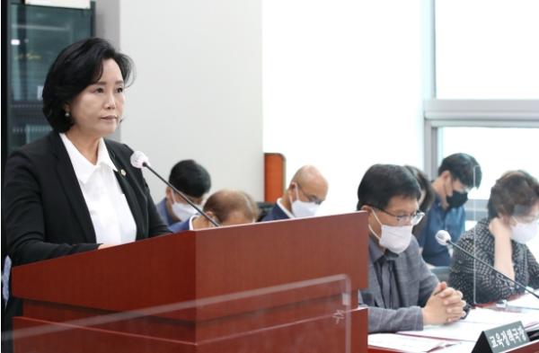 끝으로 정윤경 의원은 “학교문화예술교육은 제4차산업혁명 시대 우리 학생들 모두 문화예술교육을 통한 감수성 함양과 전인적 성장을 이루어 갈 수 있도록 미래시대 교육에서 보다 강화되어야 할 분야라고 생각한다”고 소견을 밝히며 “문화예술교육 취약계층 지원 등 본 조례의 내용을 구현하기 위해서는 2019년도 90억 원, 2020년도?2021년도 85억 원, 2022년도 74억 원(특교 9억3천만원 포함)으로 문화예술교육 관련 예산이 지속적으로 감소하는 사태에 대해서도 도교육청에서 보다 적극적으로 대처할 필요가 있다”고 지적했다.