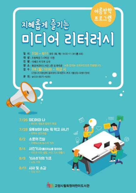 고양시 화정어린이도서관이 어린이들이 다가오는 여름방학을 보람 있게 보낼 수 있도록 '지혜롭게 즐기는 미디어 리터러시' 프로그램을 운영한다.