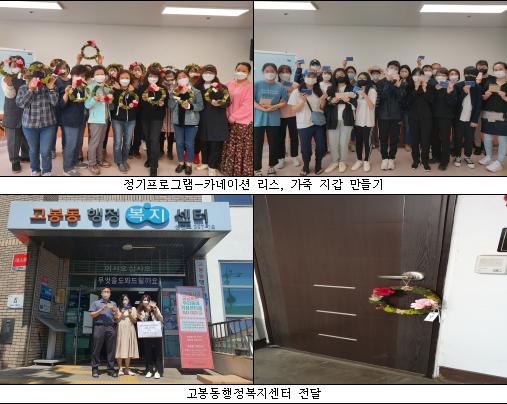 봉사자들이 직접 손으로 한땀 한땀 바느질을 통해 가죽 카드지갑을 만들고 자신만의 스타일을 살려 정성스럽게 예쁜 꽃을 만들어 각양각색의 카네이션 리스가 탄생하였다. 이렇게 만들어진 완성품들은 새롭게 거점센터로 개소한 고봉동 행정복지센터를 통해 지난 5월 가정의 달을 맞이해 지역 취약계층 어르신들께 전달됐다.