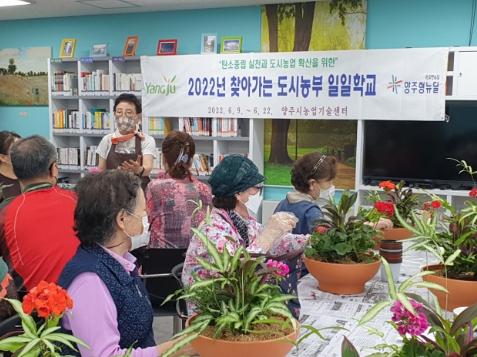 일일학교 진행을 맡은 도시농부 활동단체 양주시도시농업연구회(회장 김상옥)과 양주시마스터가드너(회장 최혜경)는 관내 아파트 8개소에 전문지식과 역량을 갖춘 도시농업관리사를 파견해 입주민 160여명을 대상으로 반려식물을 활용한 나만의 작은정원 만들기 교육을 실시했다.