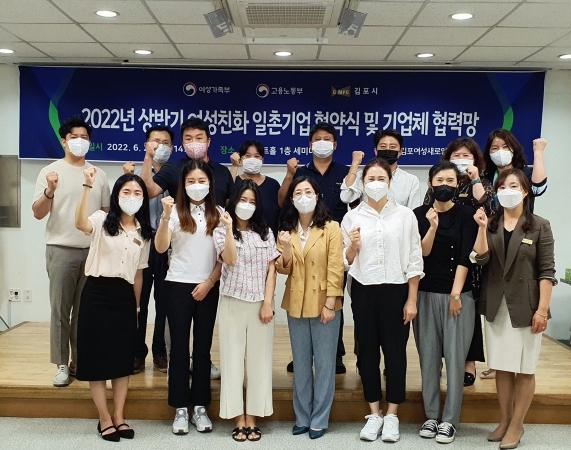 김포시는 지난 6월 21일 여성 친화적인 기업문화 조성과 여성 인력의 고용 촉진을 위한 협력체계를 구축하고자 관내 10개 기업체와 상반기(1차) 일촌기업 협약 및 기업체 협력망을 진행했다.
