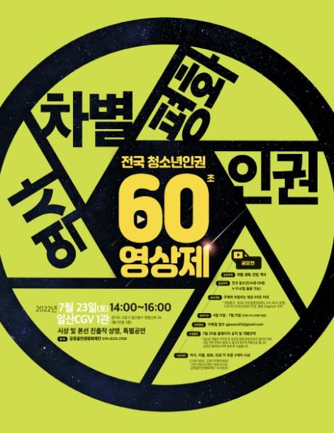 시 관계자는 “청소년 인권 60초 영상 공모전을 통해 우리 사회 전반의 인권 의식을 높이고 평화와 화합을 도모하는 계기가 되길 바란다”고 말했다.