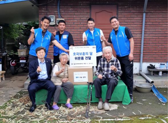 경기북부보훈지청(지청장 한국성)은 ‘6월 호국보훈의 달’을 기념하여 6월 24일 PJ청년봉사단(이은재 상사, 노대균 상사)과 재가복지대상자 중 참전유공자 본인들을 위한 후원물품 전달식을 가졌다.