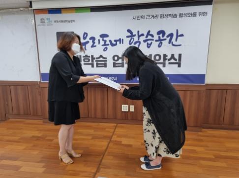 부천시는 시민의 근거리 평생학습 활성화를 위해 지난 6월 22일 부천시민학습원 누리터에서 ‘글한스푼’ 등 13개소와 ‘우리동네 학습공간’업무협약을 체결했다.