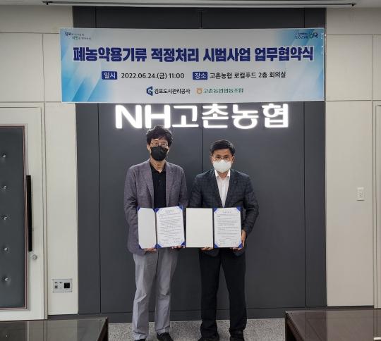 김포도시관리공사가 운영하는 재활용수집소가 지난 6월 24일 고촌농협(조합장 조동환)과 ‘폐농약용기류 적정처리 시범사업’ 업무협약을 체결했다고 밝혔다.