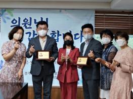 의정부교육지원청은 28일 제10대 경기도의회 의정부지역 도의원인 최경자 의원, 이영봉 의원, 권재형 전(前) 의원, 김원기 전(前) 의원에게 의정부지역 교육발전과 우수한 교육환경 조성에 기여한 공로로 감사패를 전달하였다.