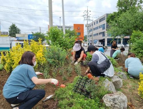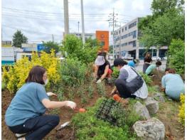 화단 가꾸기에 참여한 주민들은 잡초와 고사한 식물을 정리하고 금계국, 라벤더 등 4종의 초화를 심었다.