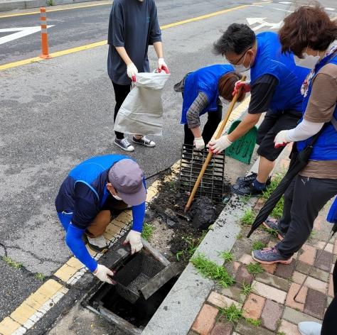 의정부시 송산1동주민센터는 6월 27일 오전에 장마철 집중호우로 인한 침수 피해를 예방하기 위해, 송산1동 자율방재단 및 통장협의회와 용현동 일원의 빗물받이를 준설했다고 밝혔다.