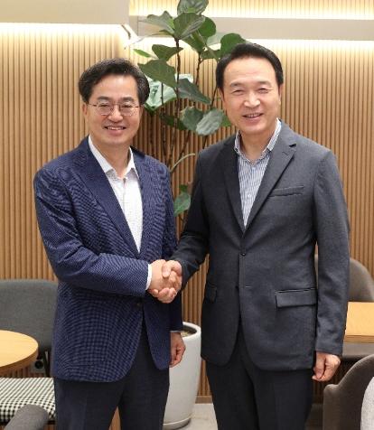 민선 8기 경기도지사직 인수위원회는 두 당선인이 29일 오전 8시 수원시 한 커피점에서 조찬 회동을 갖고 ▲과밀?과잉 학급 문제 신속 해결 ▲돌봄, 방과 후 학교 확대 ▲학생급식 문제 개선 등의 경기도 교육 현안 문제해결을 위해 함께 노력하기로 뜻을 모았다고 밝혔다.