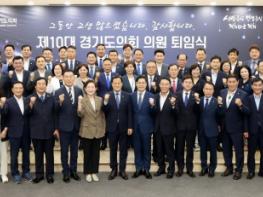장 의장은 이날 2차 본회의 직후 의회 1층 대회의실에서 ‘제10대 경기도의회 퇴임식’을 열어 주요 의정활동 기록을 담은 동영상을 시청하고 우수 의원과 상임위원장, 연구단체 등에 감사패와 공로패를 수여하며 제10대 의회의 의정 성과를 되짚었다.