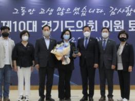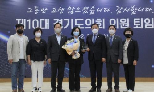 경기도의회 교육기획위원회 위원장 정윤경 의원(더불어민주당, 군포1)이 6월 29일 도의회 대회의실에서 열린 ‘제10대 경기도의회 의원 퇴임식 행사’에서 오병권 경기도지사 권한대행으로부터 감사패를 수여 받고, 장현국 경기도의회 의장으로부터 공로패를 수여 받았다.