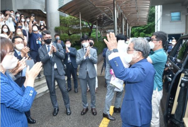 경기도교육청은 30일 도교육청 남부청사에서 주민직선 제3·4기 이재정 교육감 퇴임식을 가졌다.
