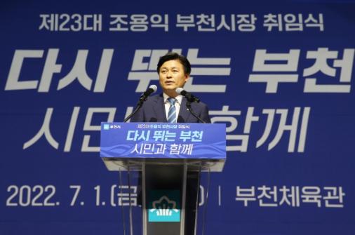 민선8기 조용익 부천시장 취임식이 1일 저녁 7시 부천체육관에서 개최됐다.