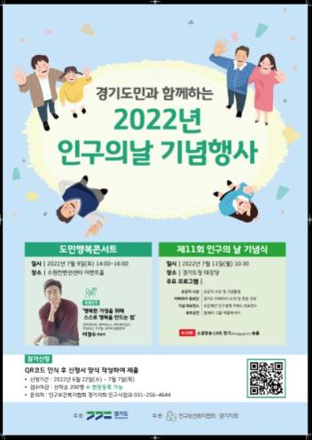 경기도와 인구보건복지협회경기회는 7월 11일 인구의 날을 기념해 오는 9일부터 16일까지 ‘2022년 경기도 인구주간’을 운영한다.