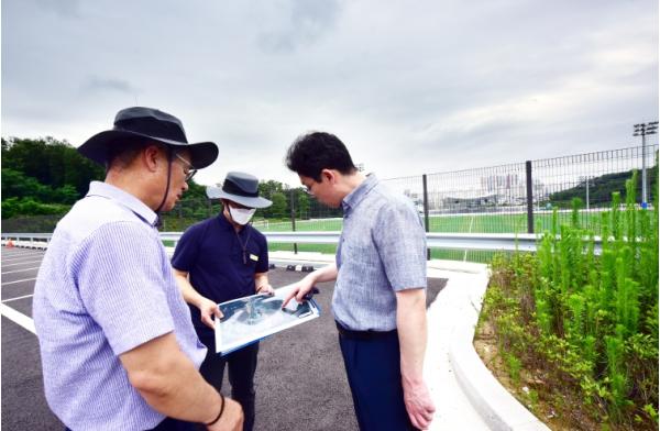 7월 7일 허승범 김포시 부시장은 공원녹지과에서 관리하고 있는 솔터힐링 유아숲체험원 및 가현산-허산 숲길을 방문하여 주요시설에 대하여 현장행정을 실시했다.