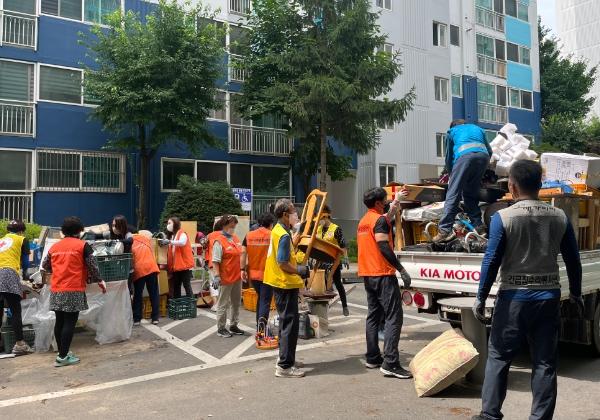 이에 양주2동은 아파트 관리사무소, 입주자 대표회의와 협업을 통해 해당 거주자를 설득해 적치물 처리에 합의를 이끌어냈고, 이날 사회단체협의회 회원, 양주시 자원봉사센터 회원 등 40여 명이 모여 오전 8시부터 1t 트럭 총 13대 분량의 적치물을 처리했다.