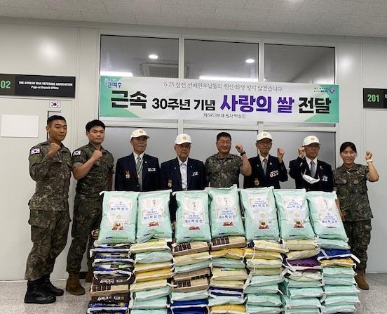 오철환 6.25참전유공자 파주시지회장은 ”군 복무 30년을 훌륭하게 마친 국군 후배가 선배들의 희생을 잊지 않고 쌀을 기탁해주셔서 감사드린다“고 말했다.