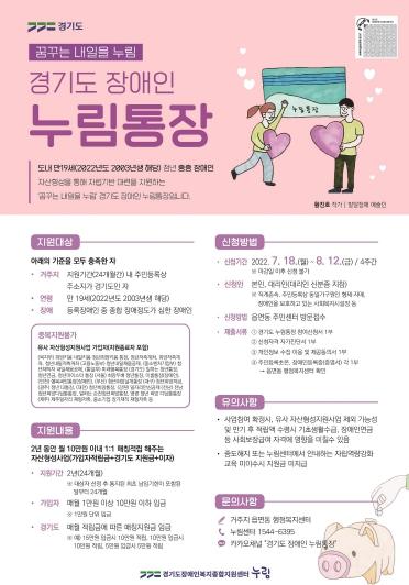 최희진 노인장애인과장은 “장애인 누림통장 사업이 장애를 가진 청년들의 올바른 경제개념, 저축 습관, 안정된 자립 기반을 마련하는 데 도움이 될 수 있길 기대한다”고 말했다.