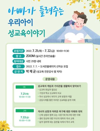 도서관 관계자는 “이번 프로그램이 가정 내 자녀 성교육 문제로 고민인 시민들에게 도움이 되기 바란다”고 전했다.