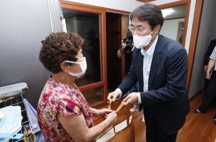 이동환 시장은 폭염 속 어르신의 건강 상태와 생활 속 불편 상황을 세심히 살피고 어르신이 안전하고 건강하게 여름을 지낼 수 있도록 수제 삼베이불 및 선풍기를 전달했다.