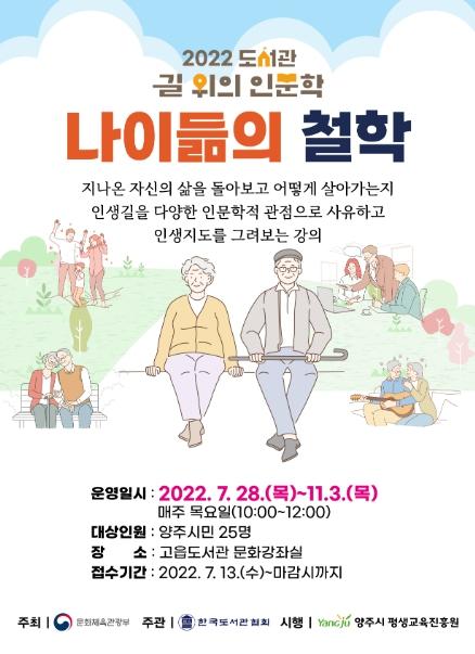 강수현 양주시장은 “양주시민들이 철학적 사유를 통해 행복한 나이 듦과 너른 사색의 웰라이프를 누리며 당당한 자신을 찾는 기회가 되기를 바란다”고 전했다.