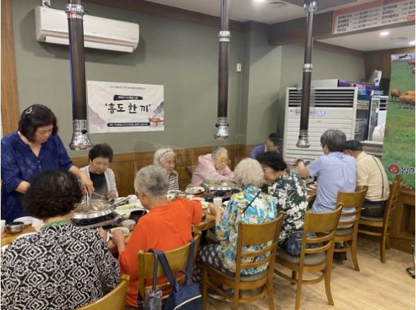 이번 흥도 한 끼 2차 사업은 임가네 한우마을(대표 임경성)에서 진행됐다. 비오는 궂은 날씨 속에서도 어르신 8분이 참석해 맛있는 식사를 즐겼다.