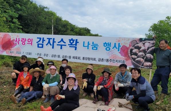 금촌1동 체육회는 지난 12일, 맥금동 소재 경작지에서 관내 어르신께 기부하기 위해 사랑과 정성으로 재배한 감자를 수확했다고 밝혔다.