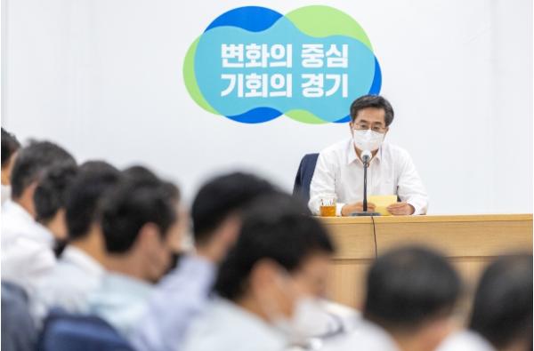 이날 회의는 특별한 형식 없이 김 지사와 참석자들 간 자유로운 의견을 교환하는 방식으로 이뤄졌다. 참석자들은 폭염과 코로나19, 공공기관 현안과 경기도 예산안 등에 대한 논의를 진행했다.
