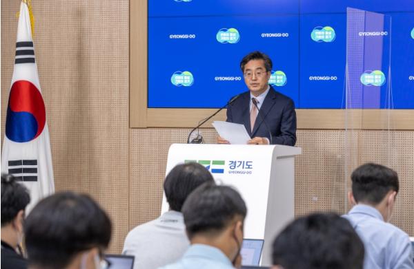 김동연 경기도지사는 19일 경기도청에서 ‘경기도 행정기구 및 정원 조례 일부개정 조례안’ 도민보고 기자회견을 열고 “지금의 경제 상황과 민생문제 관련해서 조례안 공포 문제를 더 이상 끌 수가 없다는 판단이 섰다”고 말했다.