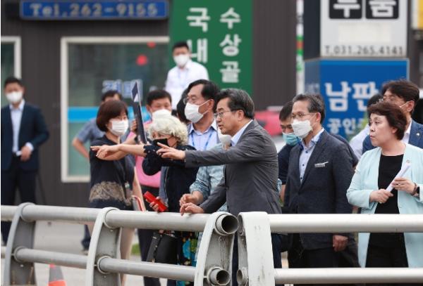 김 지사는 이어 “현장에 답이 있기 때문에 직접 방문했다. 주변을 보니 다리만 연장할 게 아니고 주변 교통 분산 등 중장기적인 계획도 같이 있어야겠다”며 “경기도, 용인시, 성남시가 그동안 협의를 진행해 협약 단계까지 와있다. 조만간 현장에서 협약식 열고, 단계별로 빨리 할 수 있는 것부터 해나가겠다”고 강조했다.
