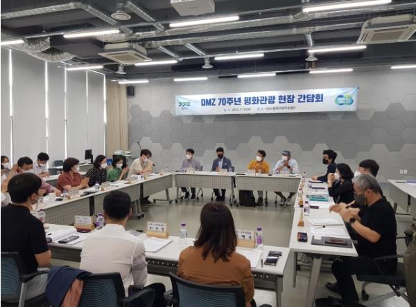 경기도가 지난 19일 DMZ생태관광지원센터에서 DMZ 인접 시군 및 민간전문가 등과 함께 ‘DMZ 70주년 평화관광 현장 간담회’를 열고, DMZ 사업에 대한 발전방향을 모색하는 시간을 가졌다.