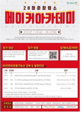 고양산업진흥원이 운영하는 28청춘창업소 메이커 스페이스가 7월 22일부터 ‘메이커 아카데미’를 운영한다.