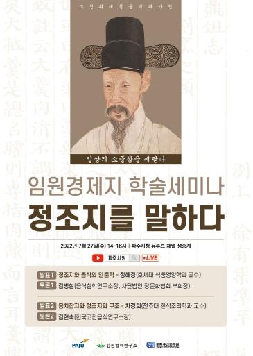파주시는 오는 27일 오후 2시 파주시청 공식 유튜브 채널에서 생중계로 2022 임원경제지 학술세미나-‘정조지를 말하다’를 개최한다고 밝혔다.