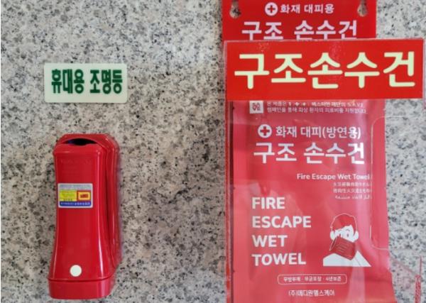해당 용품들은 평소 이용객들의 동선을 고려하여 비치하였고, 유사시 이를 사용하여 안전지역으로 신속하게 대피할 것으로 기대하고 있다.
