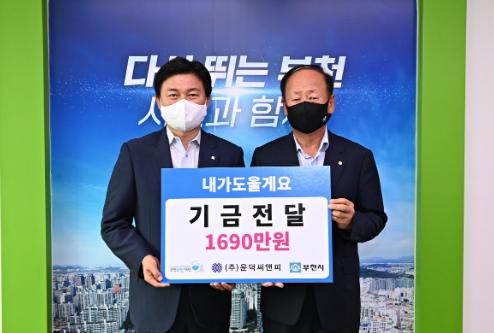 ㈜윤덕씨앤피는 지난 19일 저소득 취약계층을 지원하기 위해 부천시에 1,690만원을 기탁했다.