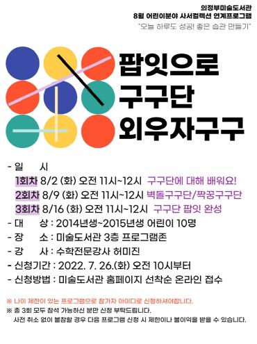 어린이 분야는 8월 2일 오전 11시부터 2014~2015년생 어린이를 대상으로 "팝잇으로 구구단 외우자구구"을 주제로 여름방학 3주 동안 팝잇으로 구구단 외우기 프로그램을 진행할 예정이다.