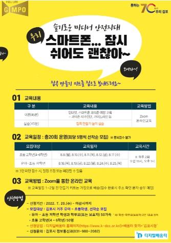 김포시는 여름방학을 맞아 인터넷, 스마트폰으로 많은 시간을 보낼 유아, 초등학생을 대상으로 스마트폰 과의존 온라인 체험교육을 진행한다.