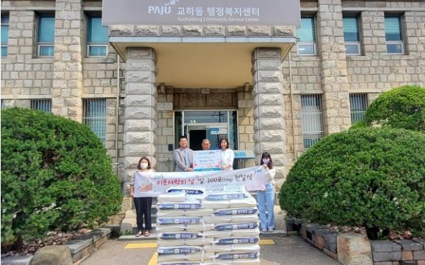 파주시 교하동(동장 이창우)은 심학산난촌(야생화연구회 회장 권오섭)에서 22일 백미 100포(1000kg·400만 원 상당)를 기탁했다고 밝혔다.