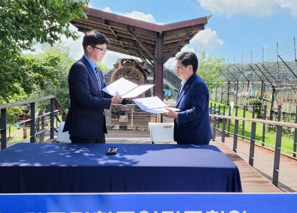 이날 협약식은 전쟁의 상흔과 평화를 되새기는 임진각 평화누리 증기기관차 앞에서 파주시와 동작구 협의회의 임원진 14명이 참석한 가운데 진행됐다.