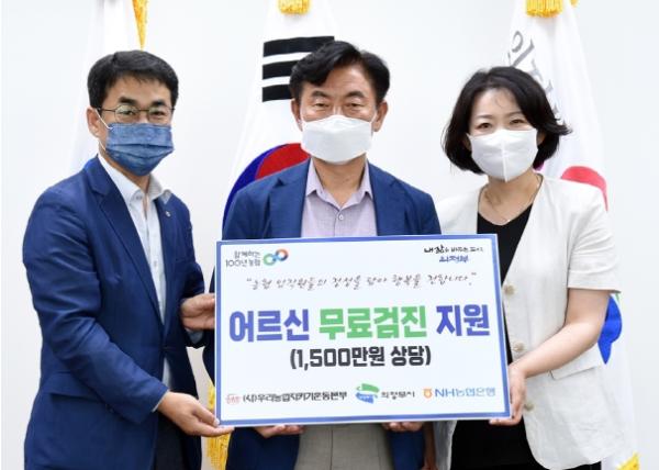 의정부시는 7월 22일 (사)우리농업지키기운동본부에서 의정부시에 거주하고 있는 취약계층을 위한 종합 건강검진 지원 기금(1,500만 원 상당)을 전달받았다고 밝혔다.