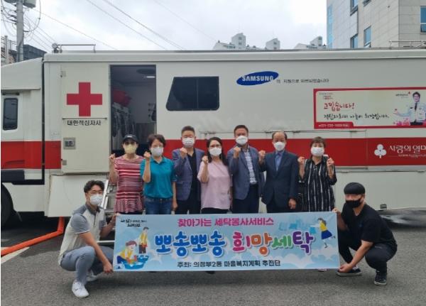 의정부2동 마을복지계획사업 중 하나인 뽀송뽀송 희망세탁은 대한적십자사 이동 세탁 차량을 이용한 이불 빨래 서비스 사업이다.