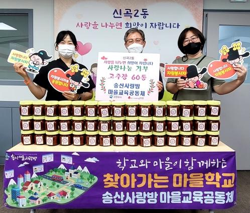 의정부시 신곡2동주민센터(동장 김세원)는 송산사랑방 마을교육공동체에서 취약계층 지원을 위한 고추장 60통(600g)을 기탁했다고 밝혔다.