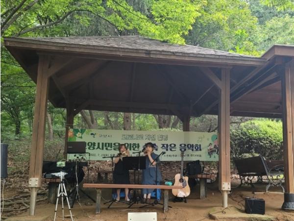 이번 ‘숲속 작은 음악회’에서는 7080 통기타와 환상의 앙상블 오카리나 연주로 시민들에게 행복한 휴식의 시간을 제공했다.
